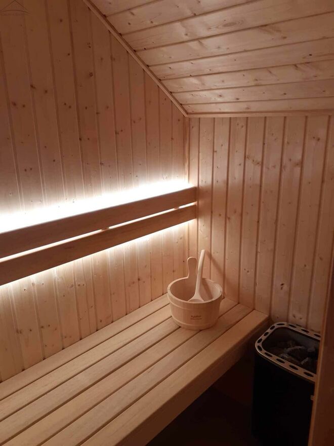 - Taras o pow. ok. 15 m, wyłożony deską modrzewiową, balkon 3m2.